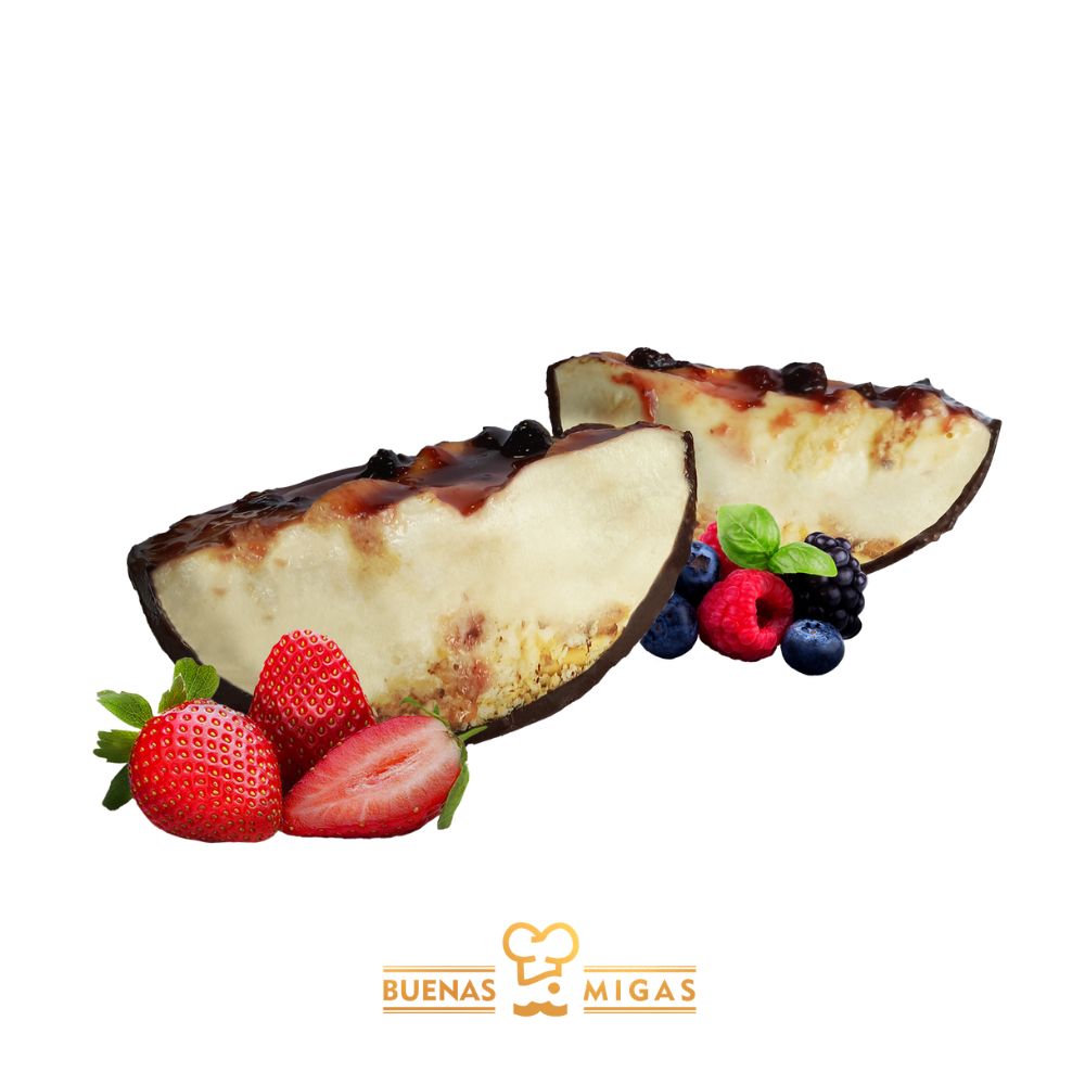 Huevo de Pascua de chocolate intenso relleno de crema cheesecake y salsa de frutos rojos. Elaborado con una base de chocolate intenso, relleno con suave crema estilo cheesecake y decorado con salsa de frutos rojos, logrando un equilibrio perfecto entre dulzura y acidez. Ideal para quienes buscan un huevo de Pascua relleno premium y diferente.